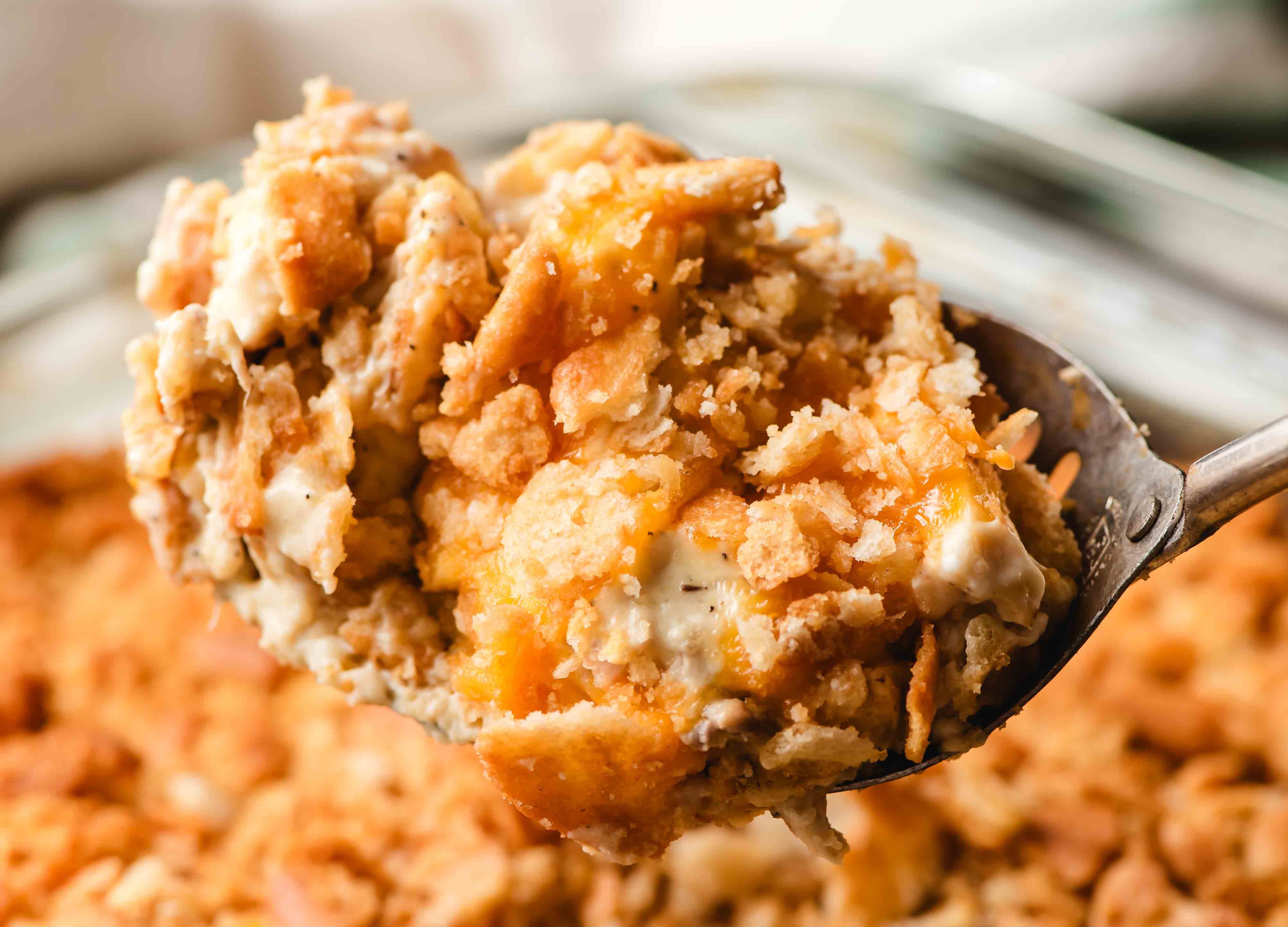 This is SO easy to throw together and classic comfort food. I can never resist a buttery Ritz cracker topping.