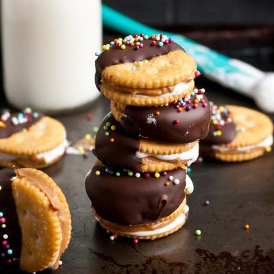 Ritz Cracker Fluffernutter Cookies- These are our family’s favorite no-bake cookies. Sweet and salty, with chocolate, peanut butter, and marshmallow, we find these disappear first off the cookie tray.