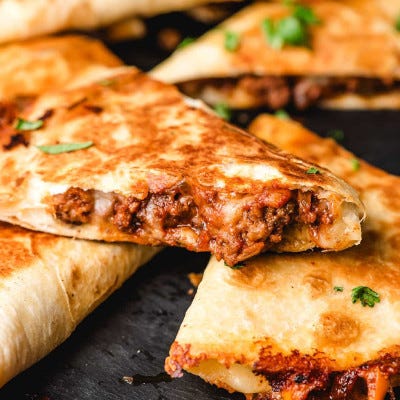 Ground Beef Quesadillas- Pssst- you can skip the beef and just make cheesy quesadillas if you’re super short on time! It’s a go-to for me when we’re really strapped for time.