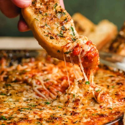 Three Cheese Lasagna Dip- Serve with garlic bread dippers for all the best lasagna flavors without the work.