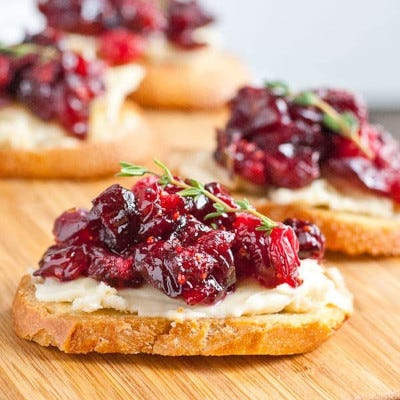 Cranberry Brie Crostini- Toasty bread + Cheese + Roasted Cranberries. This combo is never going to fail you.