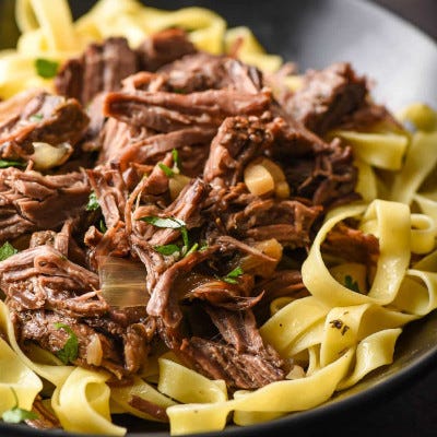 Crock Pot Shredded Beef- The tastiest roast beef can be served with pasta, mashed potatoes, or on sandwiches. It makes enough to feed a family of 4 several meals!
