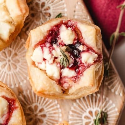 Puff Pastry Goat Cheese Bites- Cute, poppable, flaky bites that you can fill with any kind of jam + goat cheese (or brie, or whatever tickles your fancy).