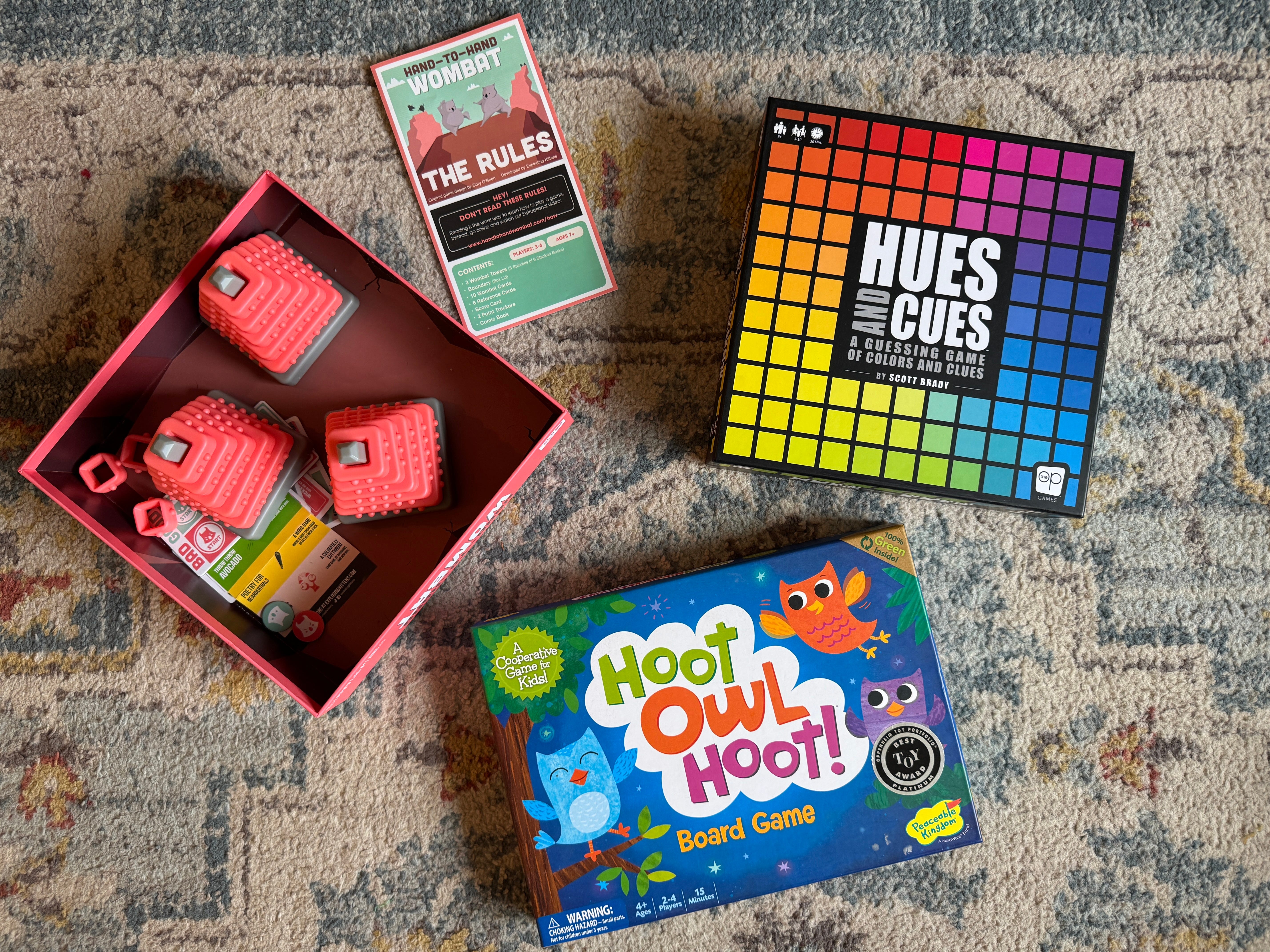 Hoot Owl Hoot- There was a season where we absolutely could not play competitive games as a family without someone bursting into (figurative) flames. During that time, we leaned on cooperative games like Hoot Owl Hoot. This one is fantastic for the preschool set.