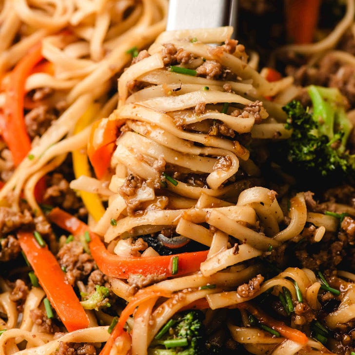 Our kids will eat noodles, and this gives us a vehicle to sneak in meat and stir fried veggies. Win-win.