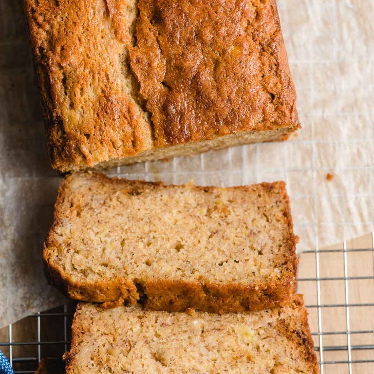 This soft chewy banana bread tastes wonderful anytime. It’s filling, sweet, and makes a great snack, light breakfast, or midnight munchie. Just go ahead and double the recipe on this one so you have a loaf to share or save in the freezer.