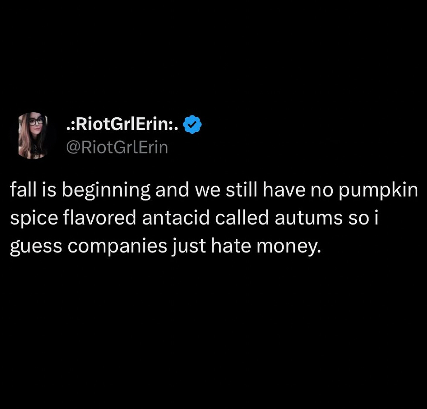 It has not gotten cool enough here in Ohio for me to truly embrace pumpkin spice season, but I am wondering why the antacid market isn’t all over this.