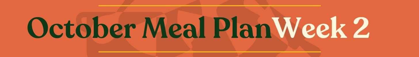 This week’s meals revolve around easy, big batch, shareable recipes, because that’s what has been top of mind around here lately. But even if (unlike us) your household/community is enjoying an injury/sickness-free October, these meals will still go a long way to saving you time. And that’s basically akin to self-care in my book.