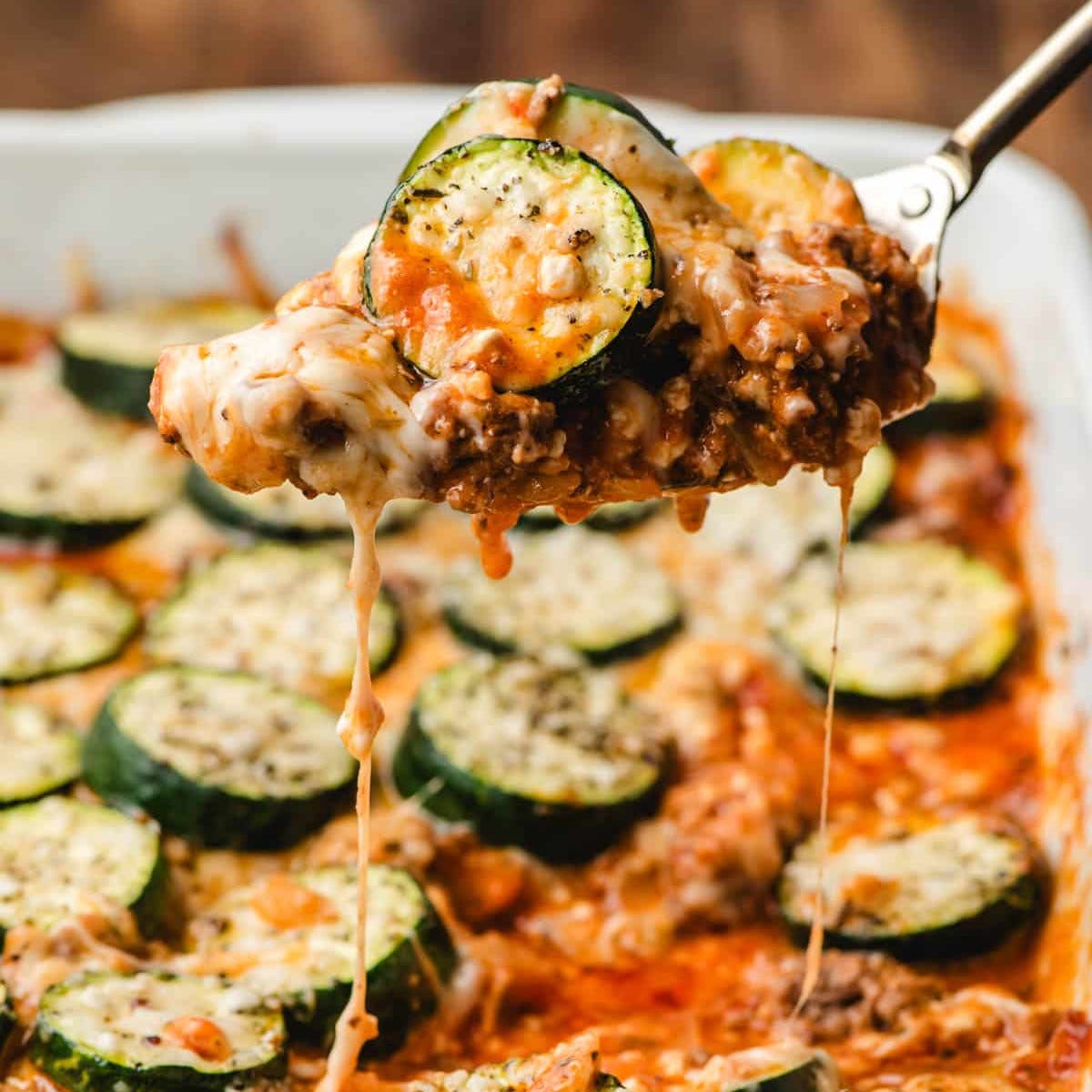 Since zucchini plants are going ham right about now, we decided to give pasta a break this week and substitute zucchini into this rich tomatoey casserole.