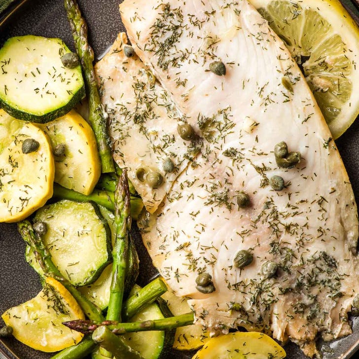 This meal keeps coming back into the rotation, because it’s way to easy to include more fish in your diet when it’s this simple to cook and customize. We’ve been remixing the veggies we include and encourage experimentation.
