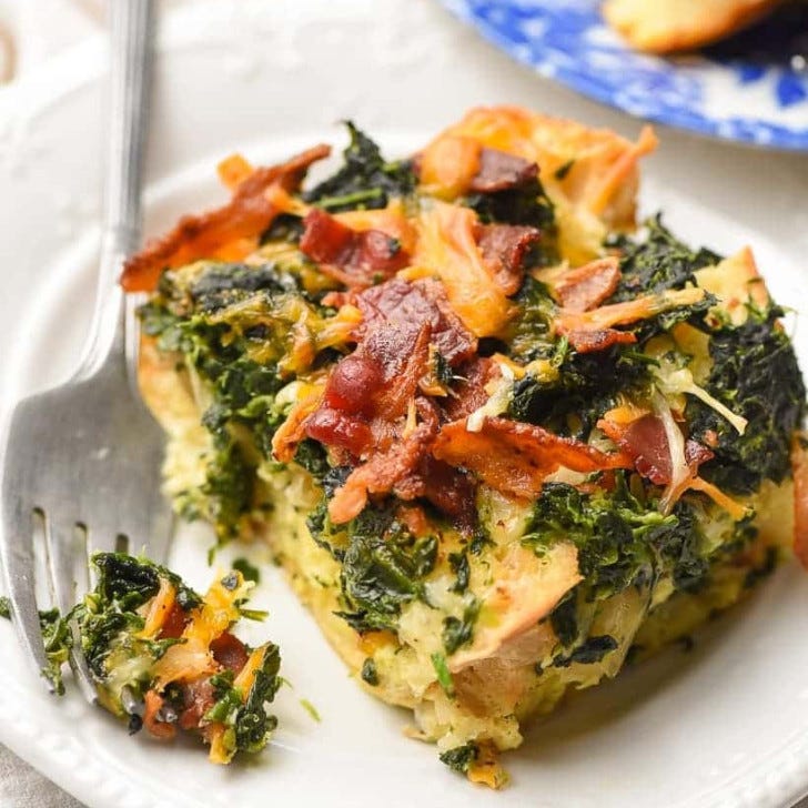 Brinner is always welcome in this house, and this bacon, spinach, and egg casserole is one of the best! Deliver it to a friend with a giant bowl of fresh cut fruit, and they’ll love you forever.