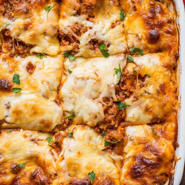 What’s a casserole list without lasagna? This one is fully Midwestern, subbing cottage cheese for the more traditional ricotta and adding just a little Swiss cheese. Don’t knock it till you try it! The five star reviews don’t lie!