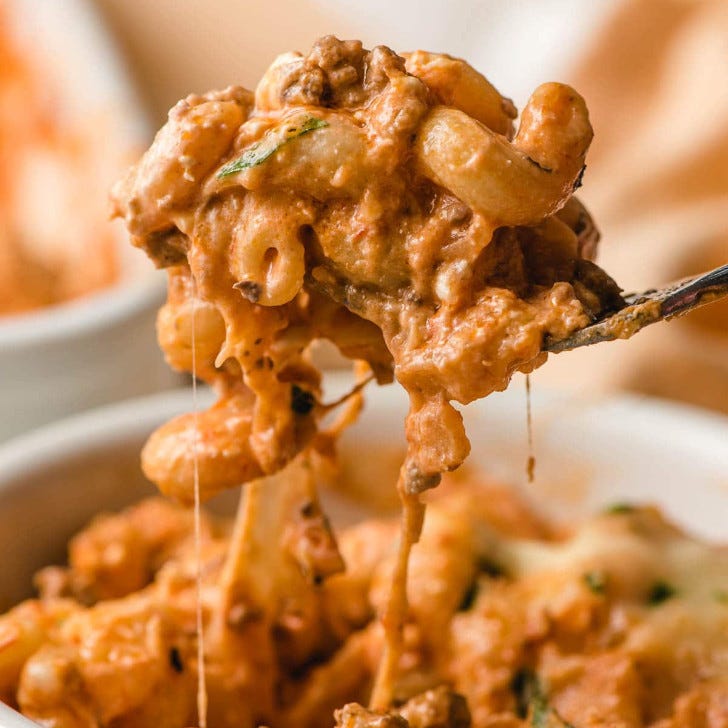 I mean, it’s in the name! This casserole is made for sharing. This is a classic ground beef and pasta casserole with a super creamy marinara sauce. I made this for my college roommates, and now they’re indebted to me for life.