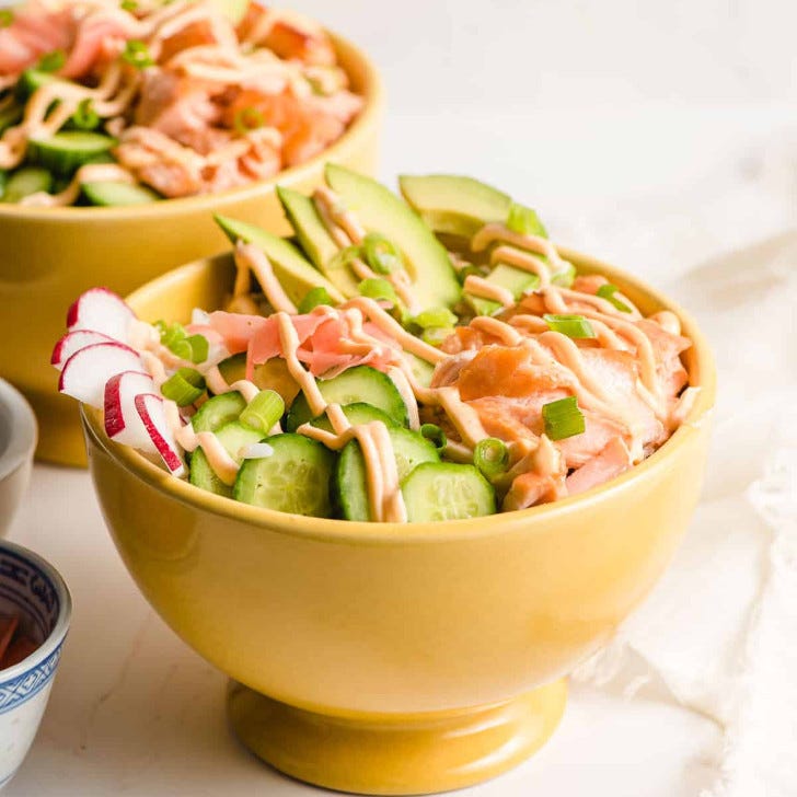 Another spin on our Tuna Bowls from last month, this meal makes quick work of some salmon fillets in the oven broiler and is teeming with flavorful sauces and crisp textures. For me, sushi (and really any excuse to eat with chopsticks) is a welcome and whimsical experience. This bright meal is almost enough to trick your brain out of it’s wintry fog.
