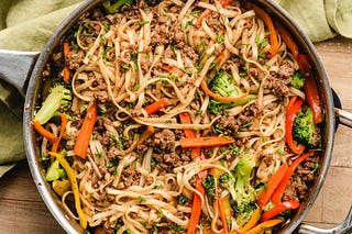 Quick, Kid Approved Ground Beef + Lo Mein Stir Fry